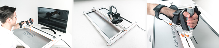 또한 이 제품은 ‘자동 난이도 알고리즘(Learning schedule algorithm)’을 기반으로 어린이 환자의 움직임 범위에 따라 게임 난이도를 조절할 수 있다. 데이터가 저장되고 그래프로 훈련 결과를 제공한다. 탄성중합체를 사용해 간편한 세척 및 소독이 가능하다.